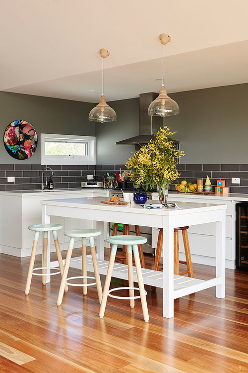 Contemporary Kitchen with Glossy Backsplash Tiles