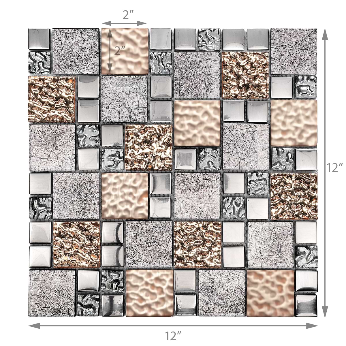 The unique look of our Gray & Metal Mosaic Tile Backsplash offers to deliver a remarkable appeal to your home! The abstract pattern of this gray and rose gold mosaic creates a dimensional feel and makes a strong statement. Whether you are looking for a kitchen backsplash with a wow factor or an accent wall for your bathroom, these gorgeous metallic tiles can add a golden glow to any space in your home!