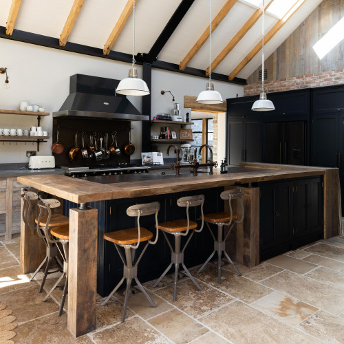 Prominent brick walls, metal details, and exposed piping lend this rural vibe. You can mix it with plenty of wood and warm color schemes to keep it on the rustic end of the industrial style. Rustic kitchens should feel intimate, so move away from the ultra-monochromatic look of modern kitchen ideas.