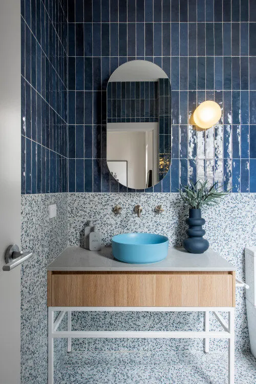 Blue Bathroom with Fun and Quirky Hexagons