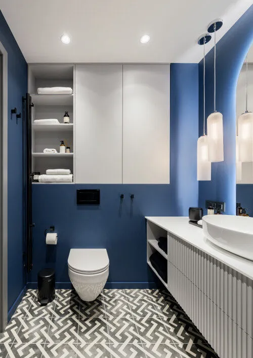 Unique Blue Bathroom Design with a Touch of White