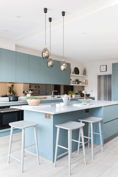 Blue is a great kitchen color concept since there are so many various tones to select from, each of which will produce a completely new aesthetic. So, whether you want a sophisticated and elegant navy kitchen, cornflower blue for a more rustic atmosphere or a whimsical pastel – there will be something here to inspire you!
