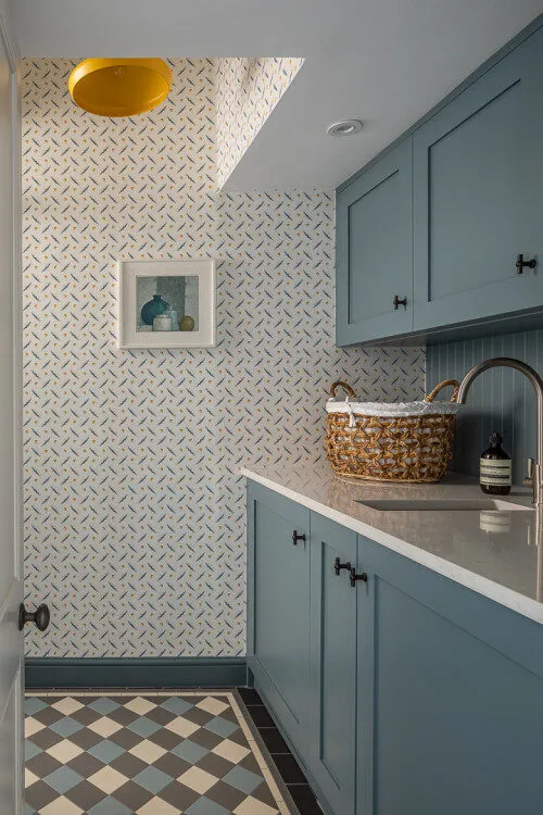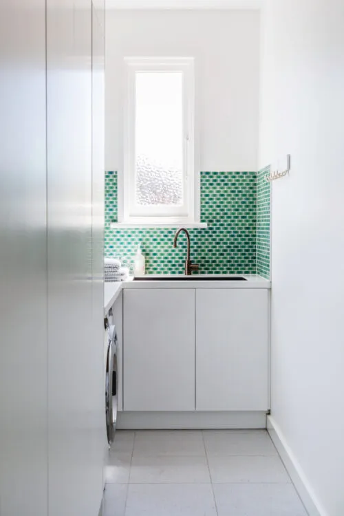 As we mentioned, laundry rooms are the perfect places where you can get creative by playing colors and backsplashes give this opportunity with their endless color options! Incorporate vibrant color through with backsplash to liven up your design!