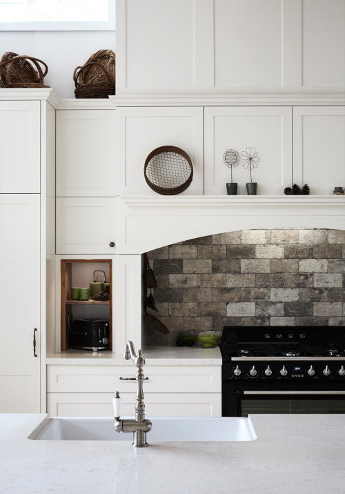 Monochrome Patterned Backsplash Tiles for White Kitchen