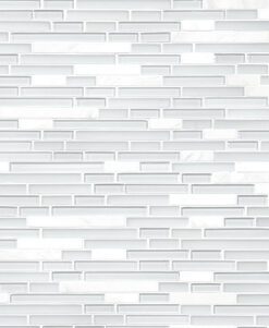 Add a touch of modern elegance to your decor with our white glass and marble mosaic tile, offering a luminous and refined look.