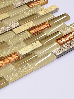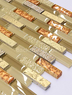 With a glamorous and luxurious feel, the brown, beige, and copper metallic glass mosaic tile enhances any interior.