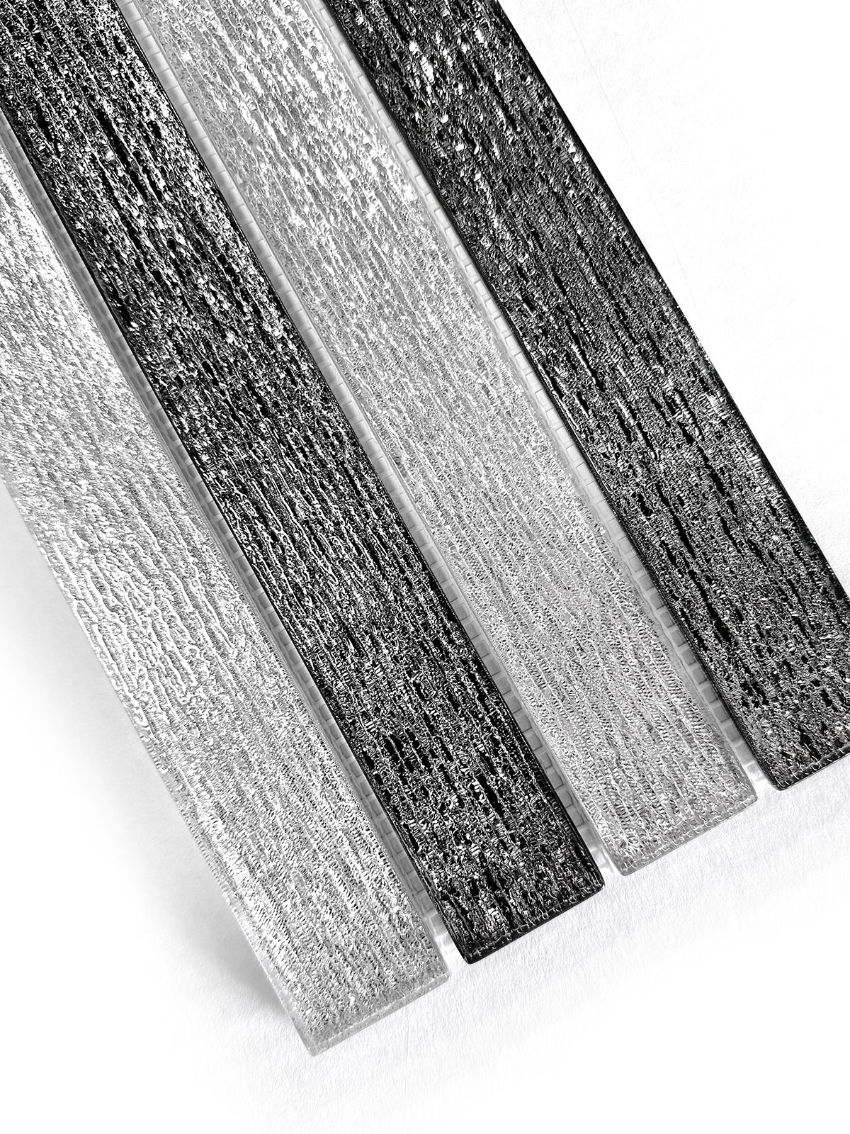 Achieve a modern aesthetic with our black and white textured glass tile, showcasing a unique checkered effect.