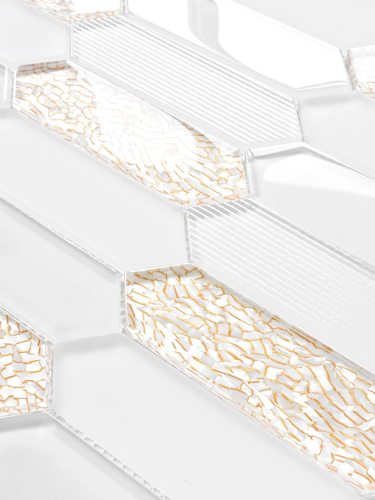 Introducing our Picket Design Glass Mosaic Backsplash Tile – a real embodiment of indoors layout excellence. This splendid introduction showcases a one-of-a-type gold-coloured mom of pearl pattern delicately interwoven with a captivating mixture of sleek and textured glass, ensuing in a special “Gold Pearl” mosaic tile that radiates an air of mystery of elegance and opulence.