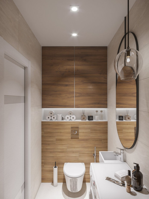 Use Of Wood Material In Bathroom Storage For Small Spaces